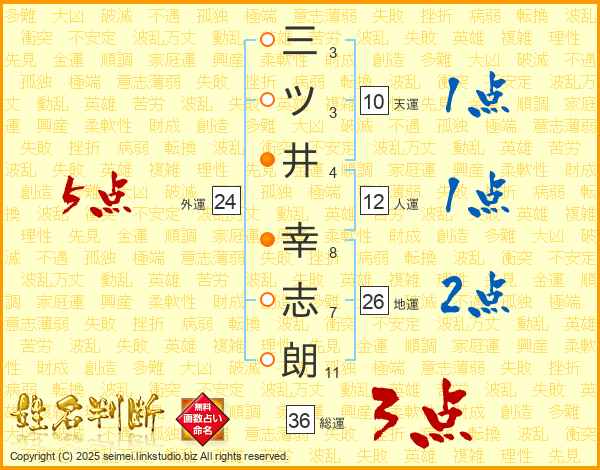 三ツ井幸志朗さんの総運は36画の3点!