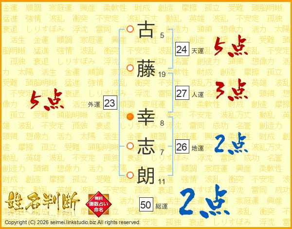 古(5画)藤(19画) 幸(8画)志(7画)朗(11画)