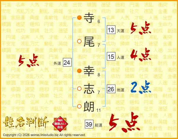 寺尾幸志朗さんの総運は39画の5点!