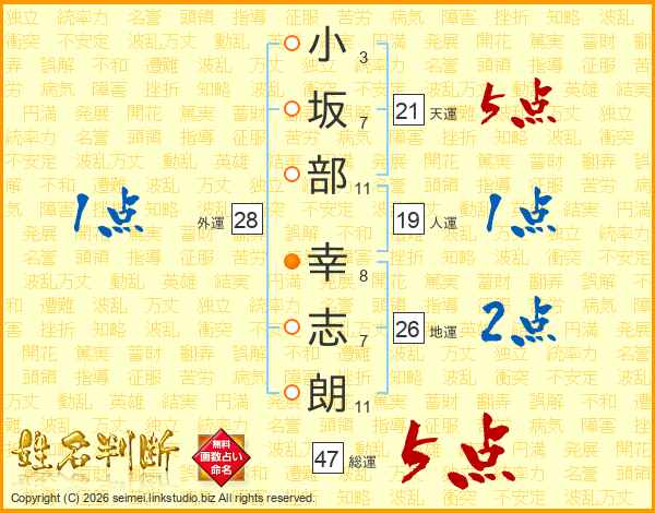 小坂部幸志朗さんの総運は47画の5点!