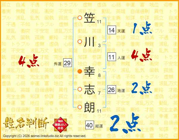 笠川幸志朗さんの人運は11画の4点!