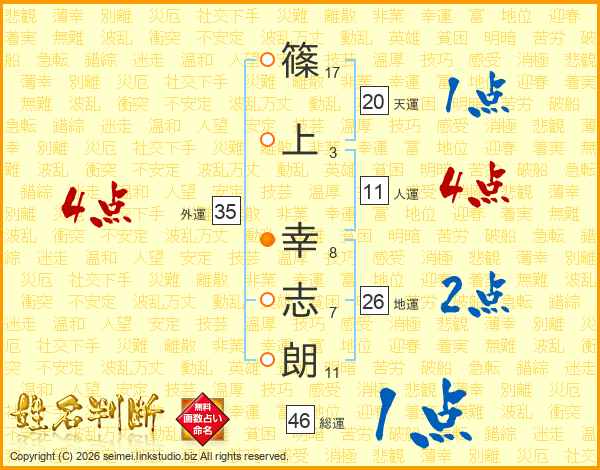 篠上幸志朗さんの人運は11画の4点!