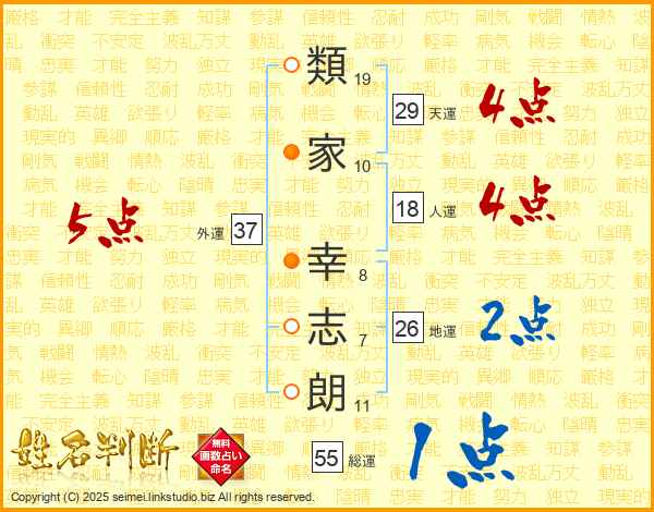 類家幸志朗さんの総運は55画の1点!