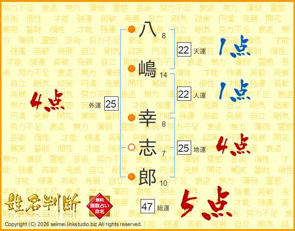 八嶋幸志郎さんの総運は47画の5点!