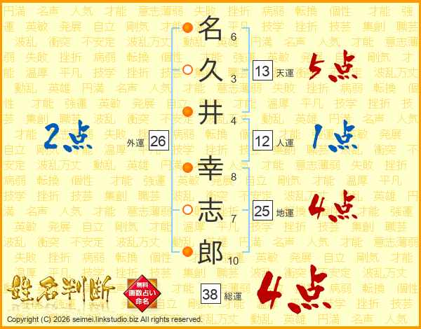 名久井幸志郎さんの総運は38画の4点!