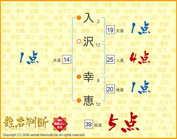 入沢幸恵さんの総運は39画の5点!