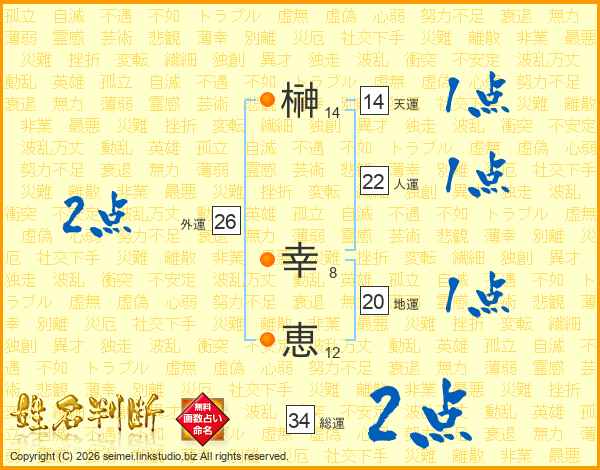 榊(14画) 幸(8画)恵(12画)