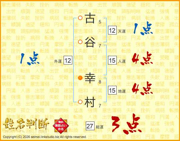 古谷幸村さんの総運は27画の3点!