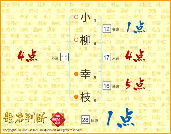 小(3画)柳(9画) 幸(8画)枝(8画)