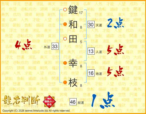 鍵和田幸枝さんの天運は30画の2点!