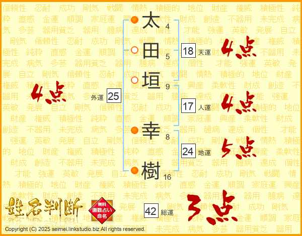 太田垣幸樹さんの天運は18画の4点!