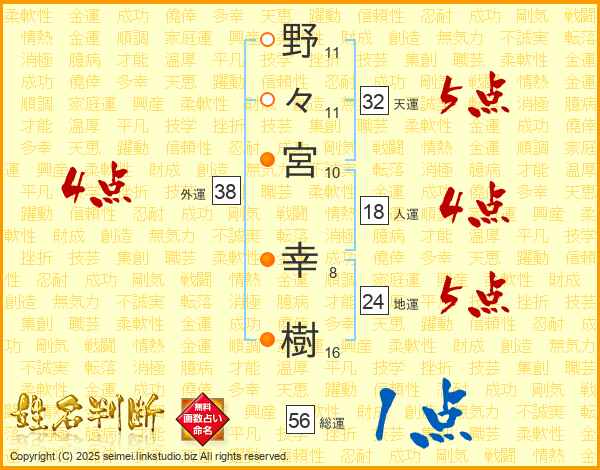 野々宮幸樹さんの天運は32画の5点!