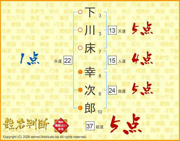 下川床幸次郎さんの総運は37画の5点!