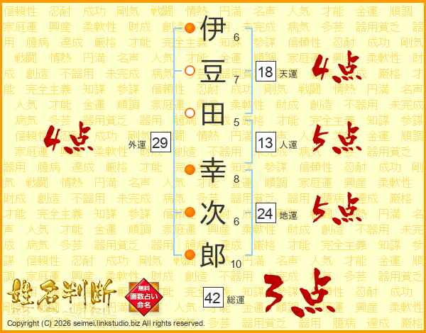 伊豆田幸次郎さんの人運は13画の5点!