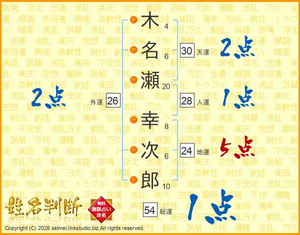 木名瀬幸次郎さんの天運は30画の2点!