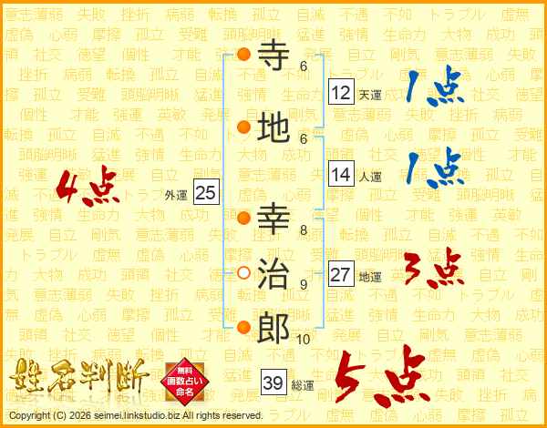 寺地幸治郎さんの総運は39画の5点!