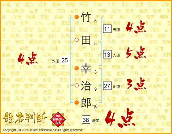 竹田幸治郎さんの総運は38画の4点!