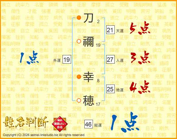 刀(2画)禰(19画) 幸(8画)穂(17画)