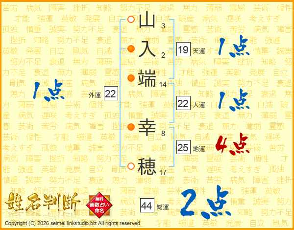 山入端幸穂さんの地運は25画の4点!