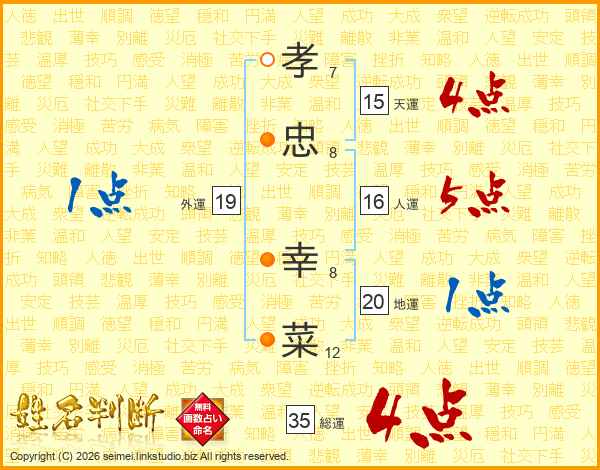 孝忠幸菜さんの総運は35画の4点!