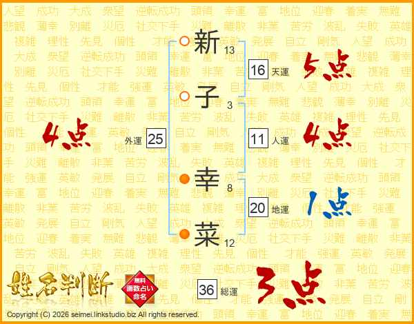 新子幸菜さんの総運は36画の3点!