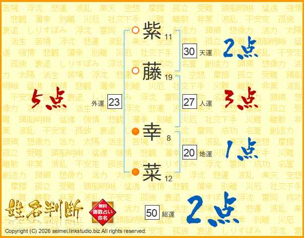 紫藤幸菜さんの外運は23画の5点!