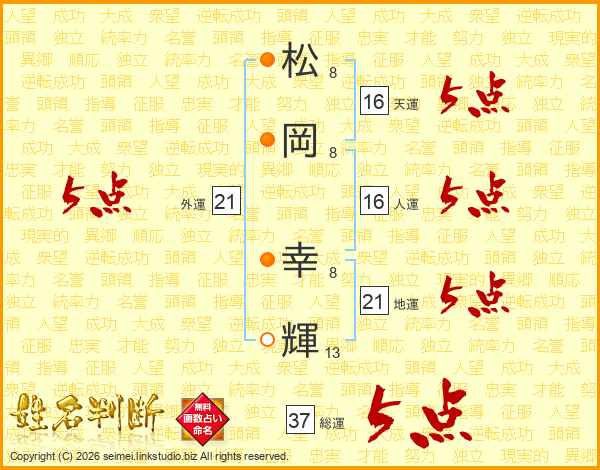 松(8画)岡(8画) 幸(8画)輝(13画)