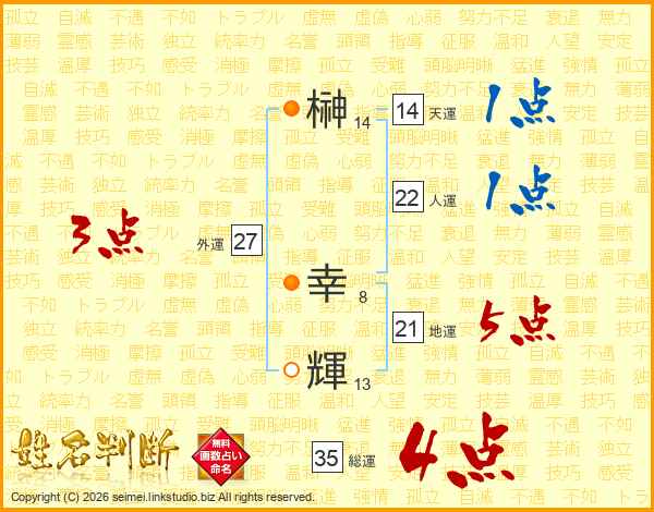 榊幸輝さんの総運は35画の4点!