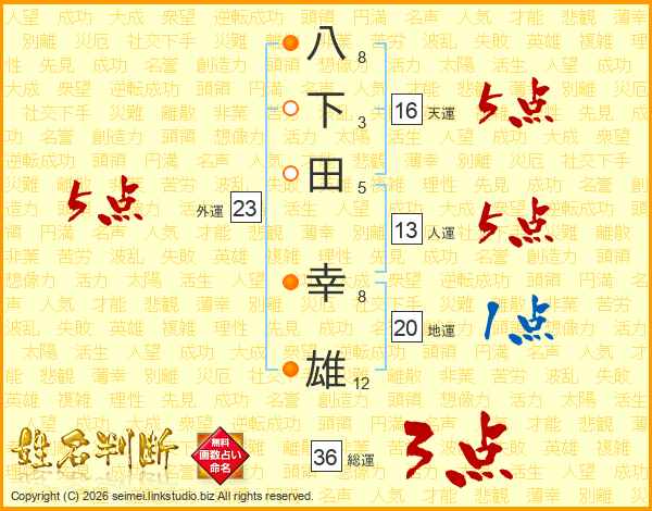 八下田幸雄さんの人運は13画の5点!