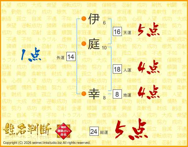 伊庭幸さんの総運は24画の5点!