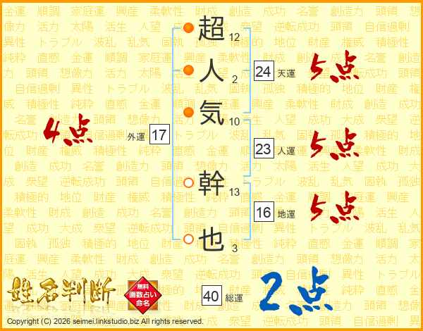 超人気幹也さんの人運は23画の5点!