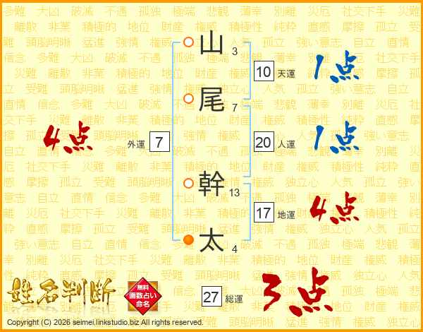 山尾幹太さんの地運は17画の4点!