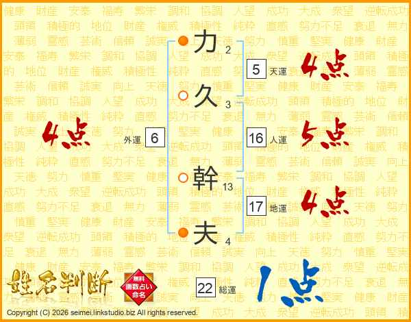 力(2画)久(3画) 幹(13画)夫(4画)