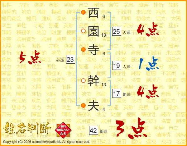 西園寺幹夫さんの天運は25画の4点!