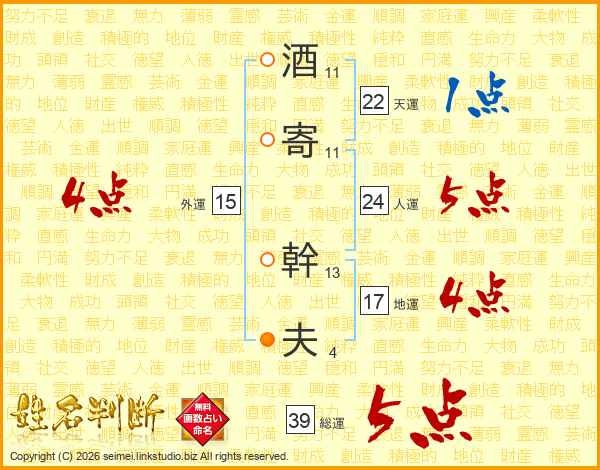 酒寄幹夫さんの総運は39画の5点!