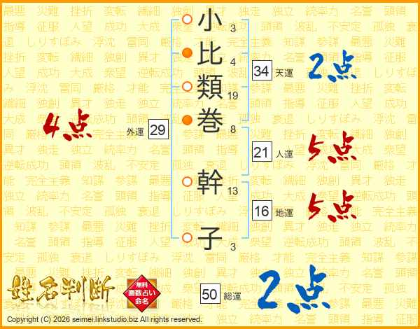 小比類巻幹子さんの外運は29画の4点!