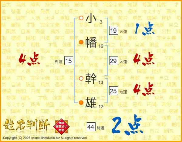 小幡幹雄さんの総運は44画の2点!