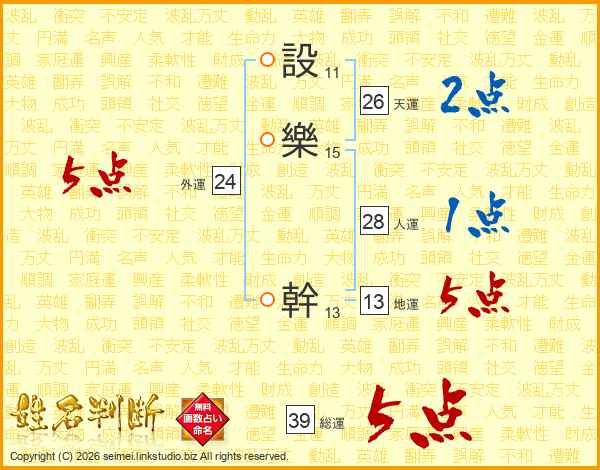 設樂幹さんの総運は39画の5点!