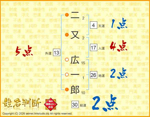 二又広一郎さんの総運は30画の2点!