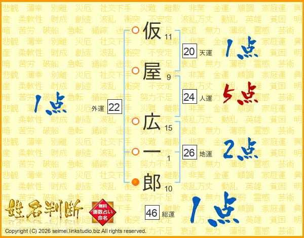仮屋広一郎さんの総運は46画の1点!