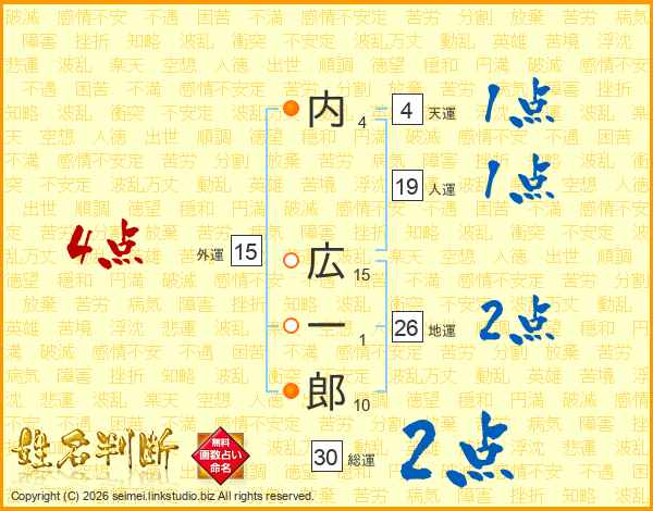 内広一郎さんの地運は26画の2点!