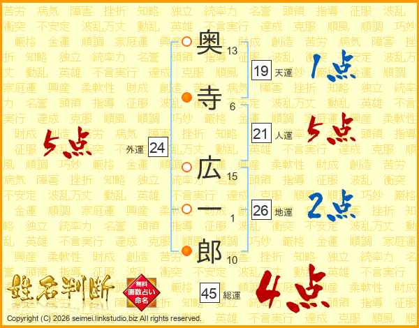 奥寺広一郎さんの地運は26画の2点!