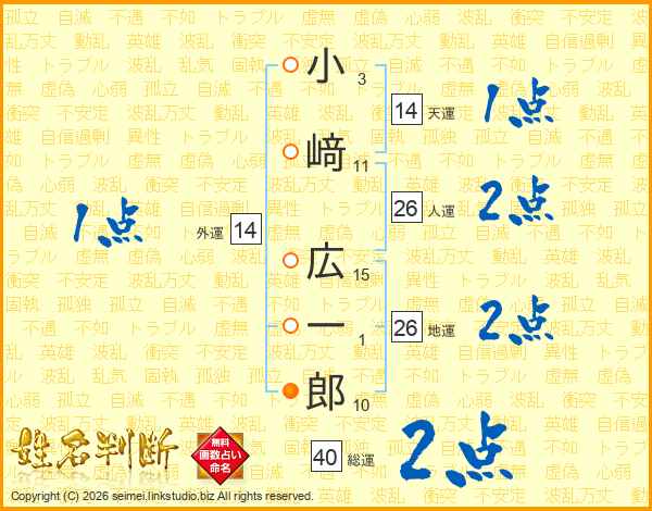 小﨑広一郎さんの地運は26画の2点!