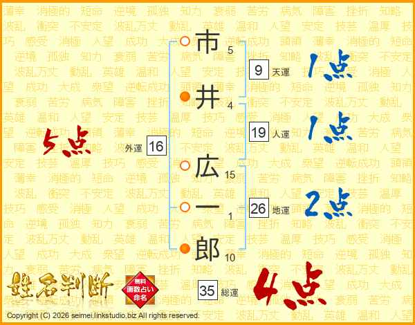市(5画)井(4画) 広(15画)一(1画)郎(10画)