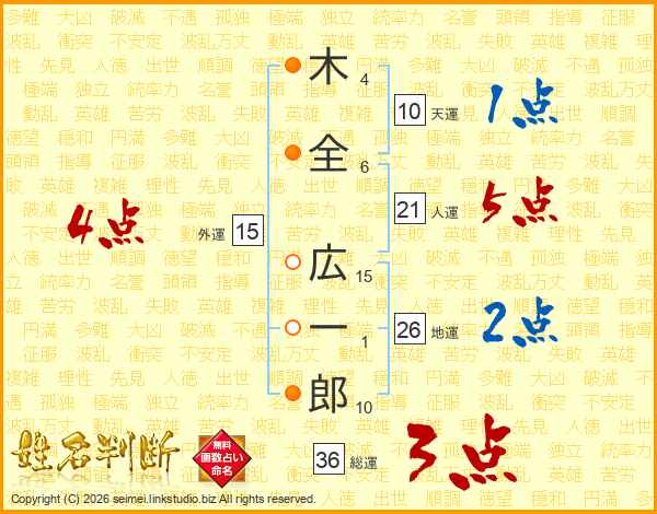 木全広一郎さんの地運は26画の2点!