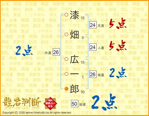 漆畑広一郎さんの地運は26画の2点!