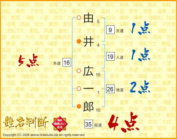 由井広一郎さんの総運は35画の4点!