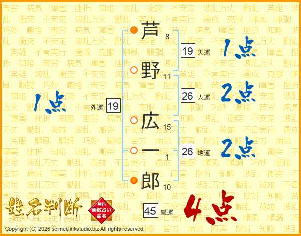芦野広一郎さんの総運は45画の4点!