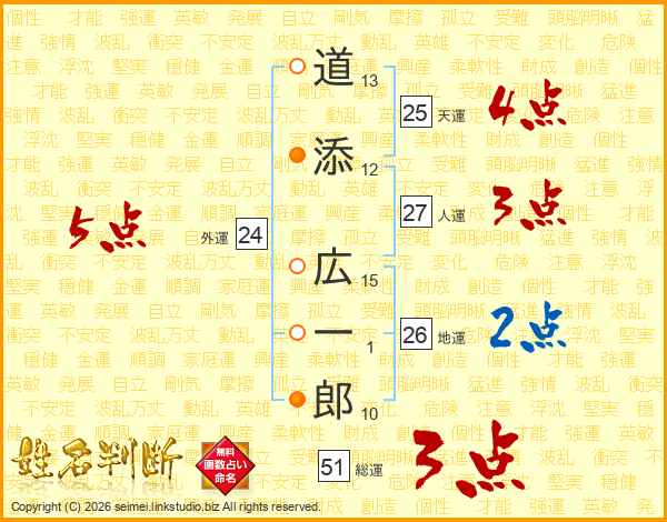 道添広一郎さんの総運は51画の3点!