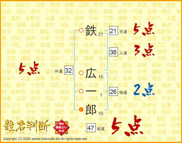 鉄広一郎さんの総運は47画の5点!